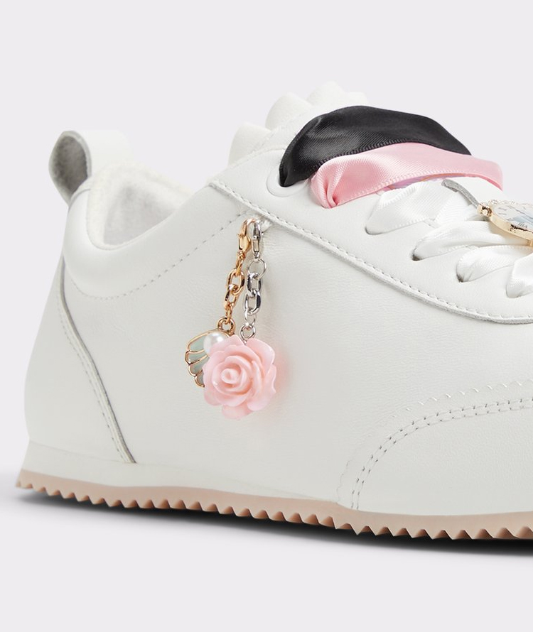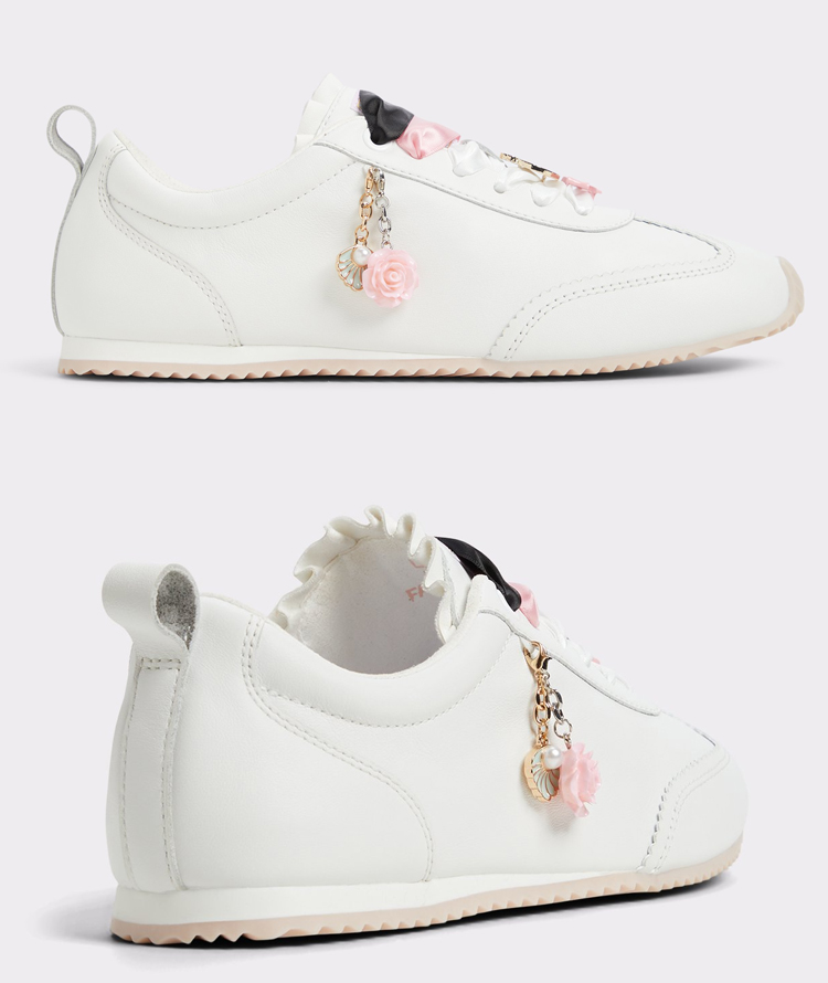 - This soft, retro-inspired silhouette gets a fairytale upgrade. Interchangable pink, white, and black satin shoelaces and princess-inspired dangling charm details, make these leather sneakers easily personalizable no matter what your happy ending looks like.
