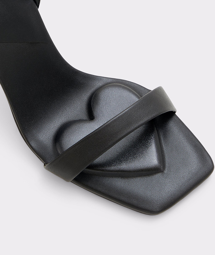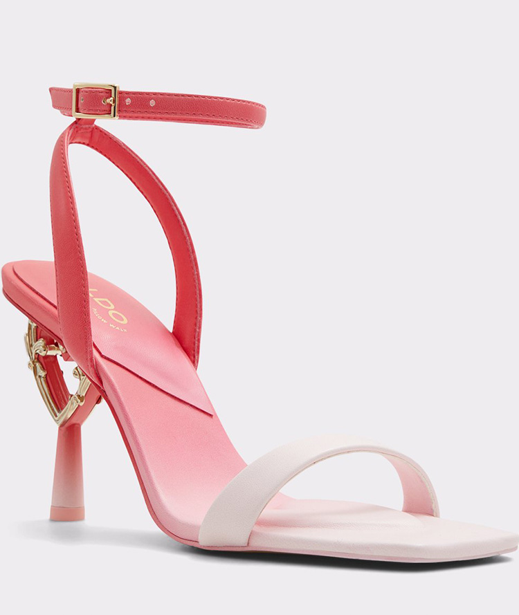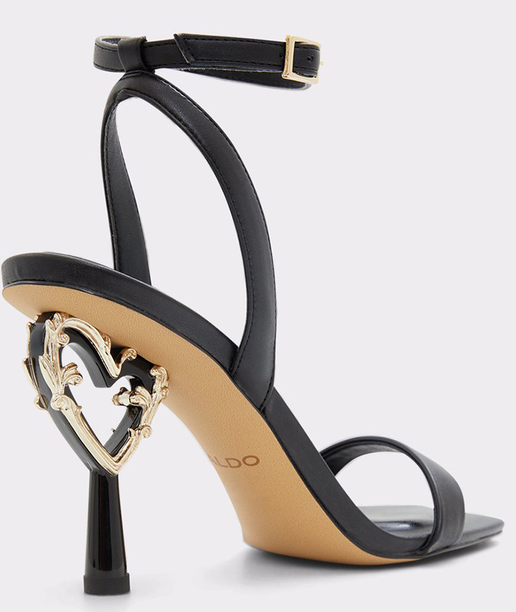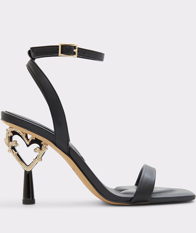 A dreamy heart ornament adorns these show-stopping strappy heeled sandals. It's love at first sight for us!