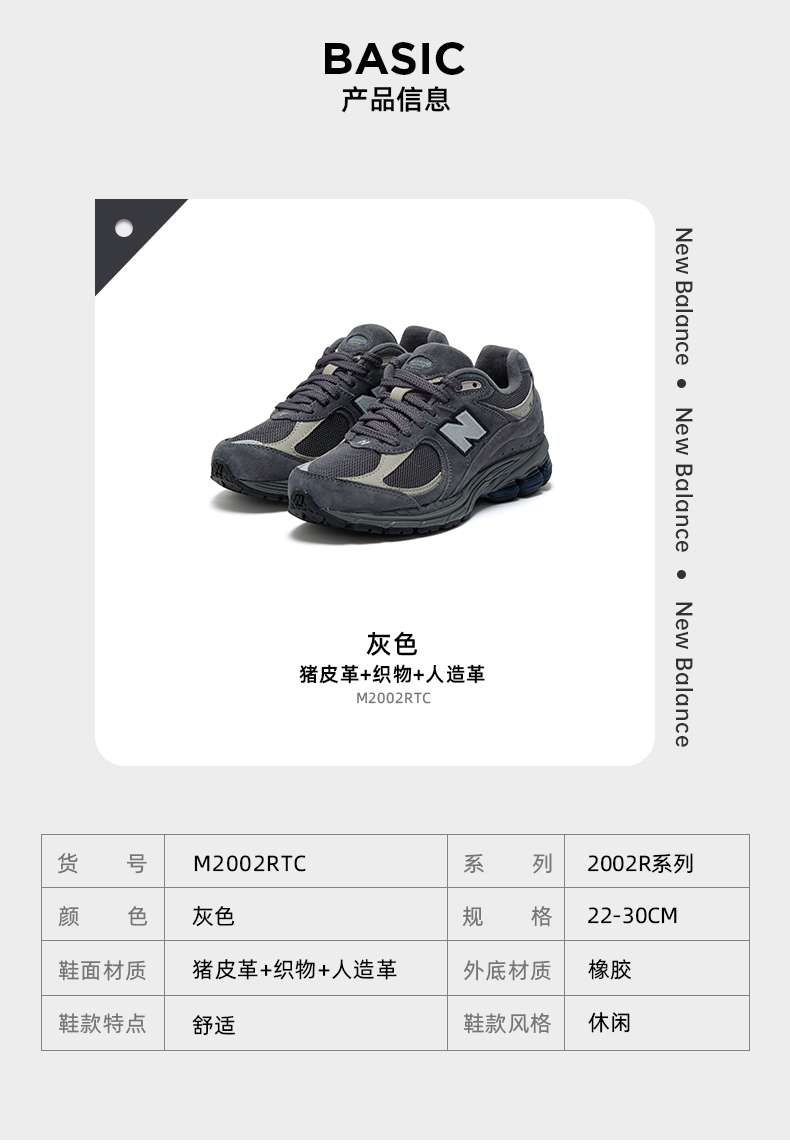 New balance nb official new men's and women's shoes breathable casualretro sports dad shoes m2002rtc