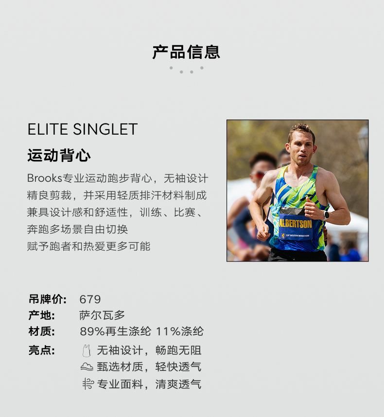 Brooks men's running top sports vest quick-dry breathable fitness sleeveless women's marathon