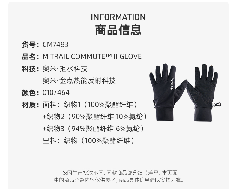 Columbia men's outdoor gold dot thermal waterproof dry fit warm gloves cm7483