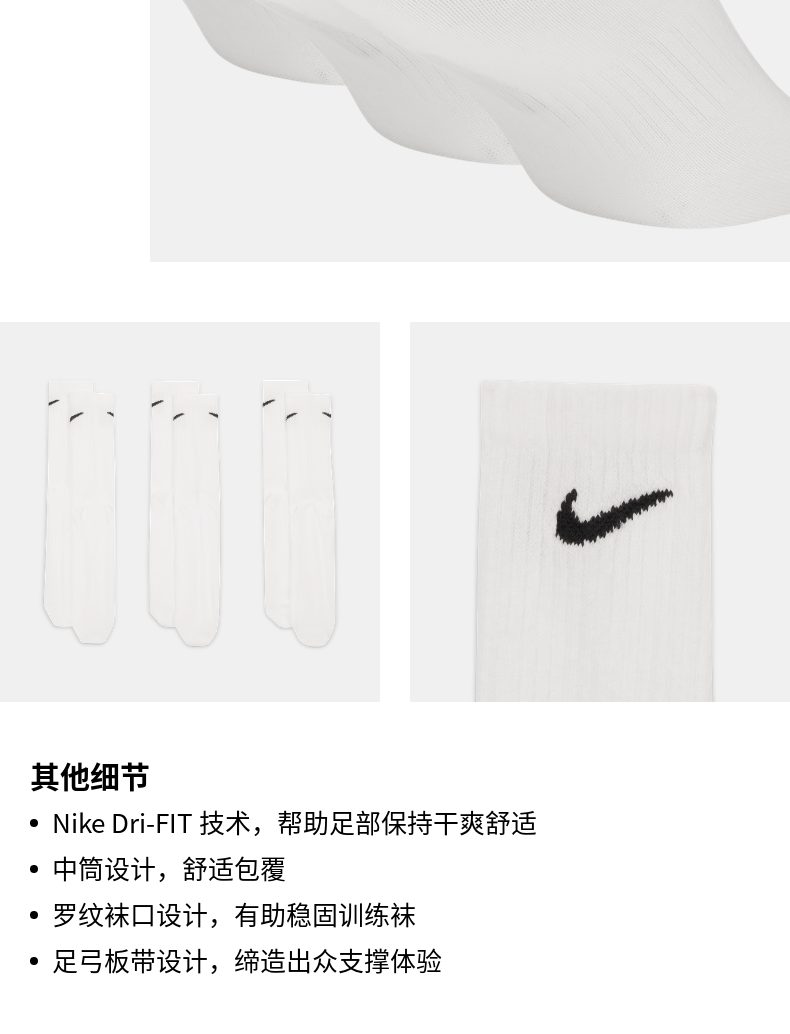 Nike quick-drying mid-calf training socks (3 pairs) winter support soft plaidnike everyday sx7676
